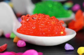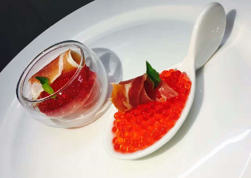 成功案例 草莓鱼子酱的做法 2018-07-03 14:12:15 点击数: 1.选择一支能让液体一滴一滴的滴下午的器材 2.把海藻粉倒进果汁里然后放进搅拌器里打搅至无白色粉体为止。最后倒出容器里让它里面的气泡慢慢的消掉(大约半小时) 3.把清水倒入容器然后把乳酸钙倒入搅匀 4.最后把已经静止的果汁海藻液,用器材吸起后拔掉那个吸柄。把装有果汁海藻液的器具放在乳酸钙的清水面上离水面大概三厘米,然后让它慢慢滴落! 5.最后把已经成型的鱼子酱捞出放进清水待用。 0-0